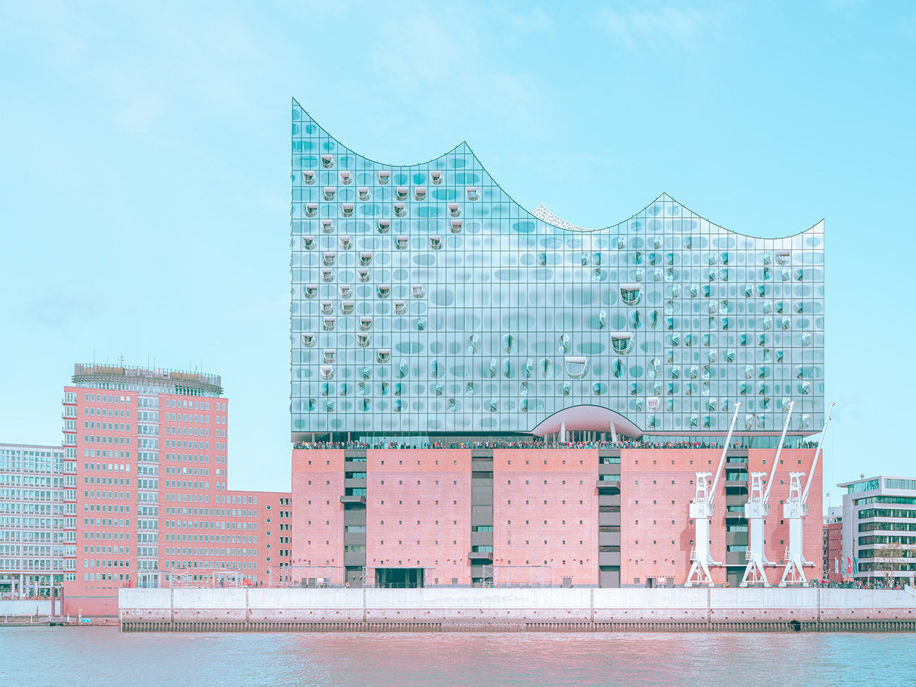 L’Elbphilharmonie unisce la memoria industriale del porto di Amburgo al desiderio di apertura e trasparenza. Il basamento in mattoni radica l’edificio nella storia, mentre la struttura in vetro lo proietta verso il cielo e il futuro. Le immagini esplorano questa soglia tra pesantezza e leggerezza, restituendo l’architettura come simbolo poetico di dialogo tra passato e visione.
